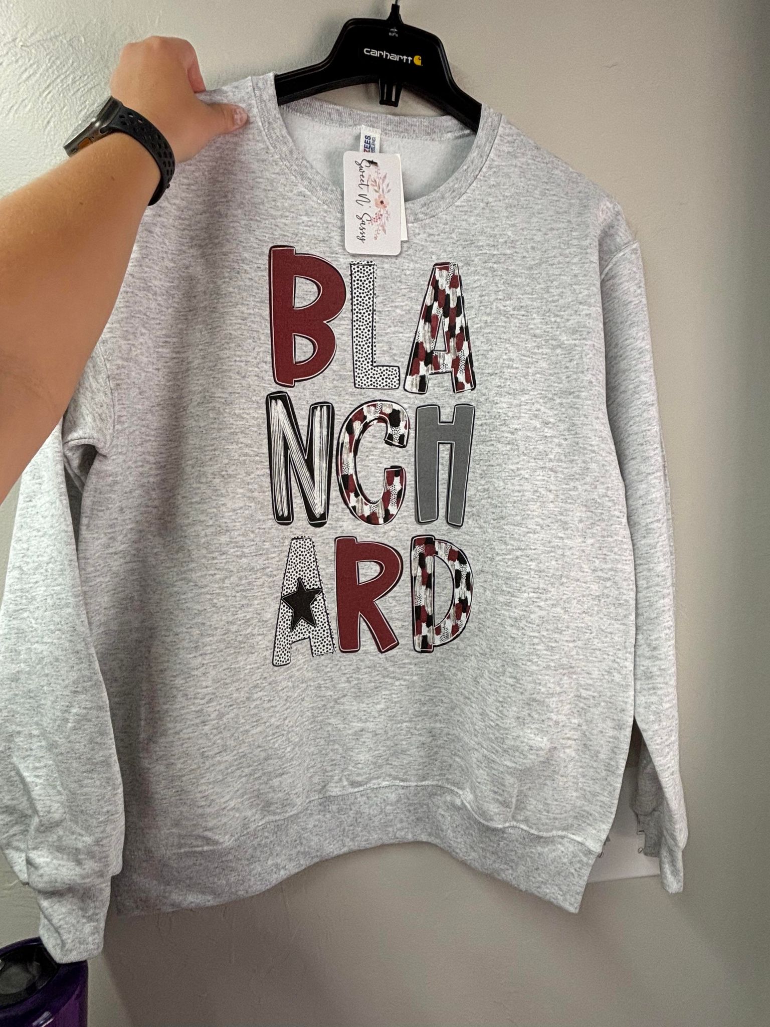 Cozy up in our Blanchard Stacked Sweatshirt and get ready for some cool Friday nights! With its cozy material and stylish design, you'll be the envy of all your friends while showing off your Blanchard pride. Don't miss out on the perfect sweatshirt for those laid-back, yet bold, weekend vibes.