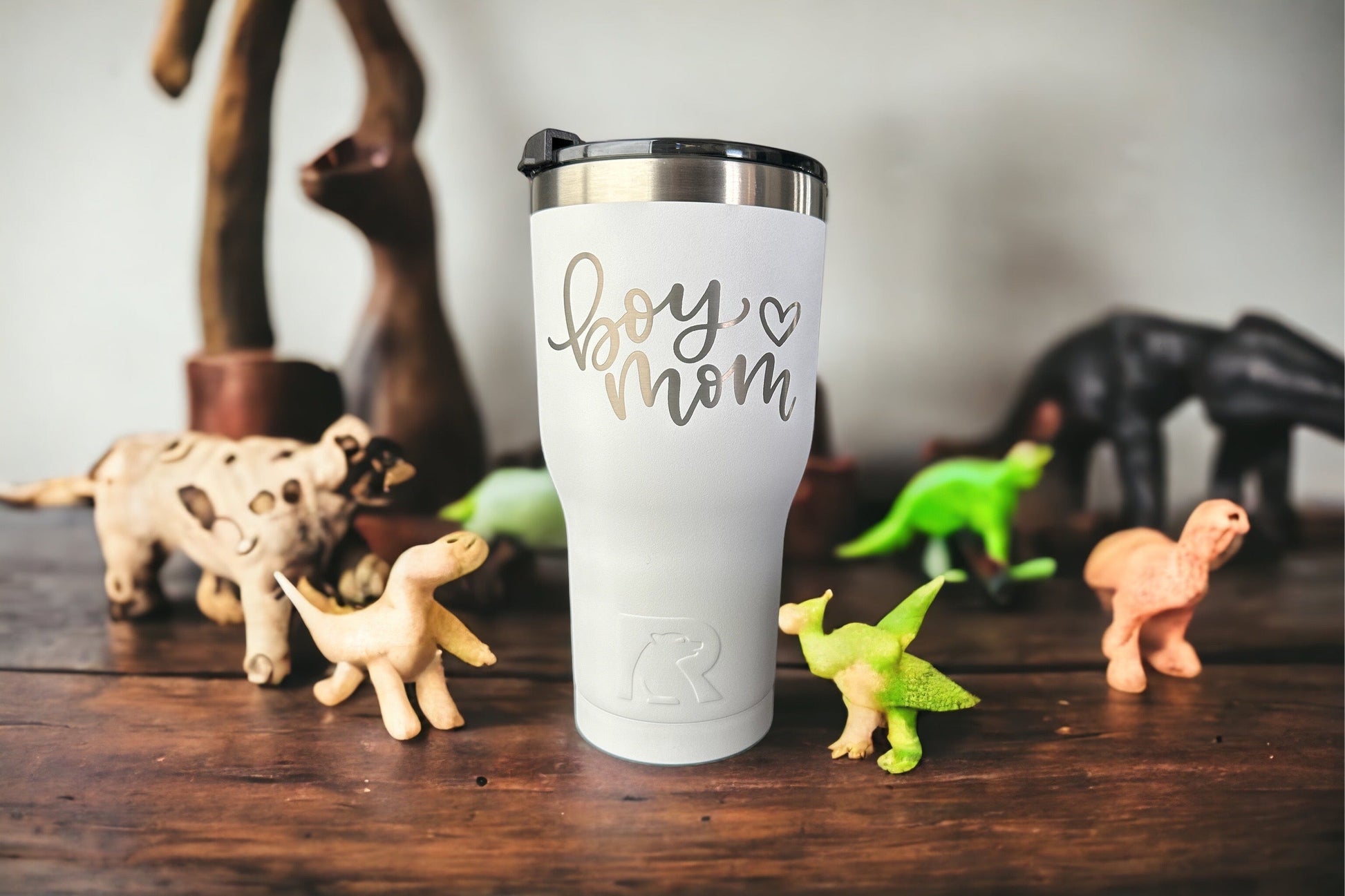 RTIC brand 30 oz. tumbler with engraved "Boy Mom".