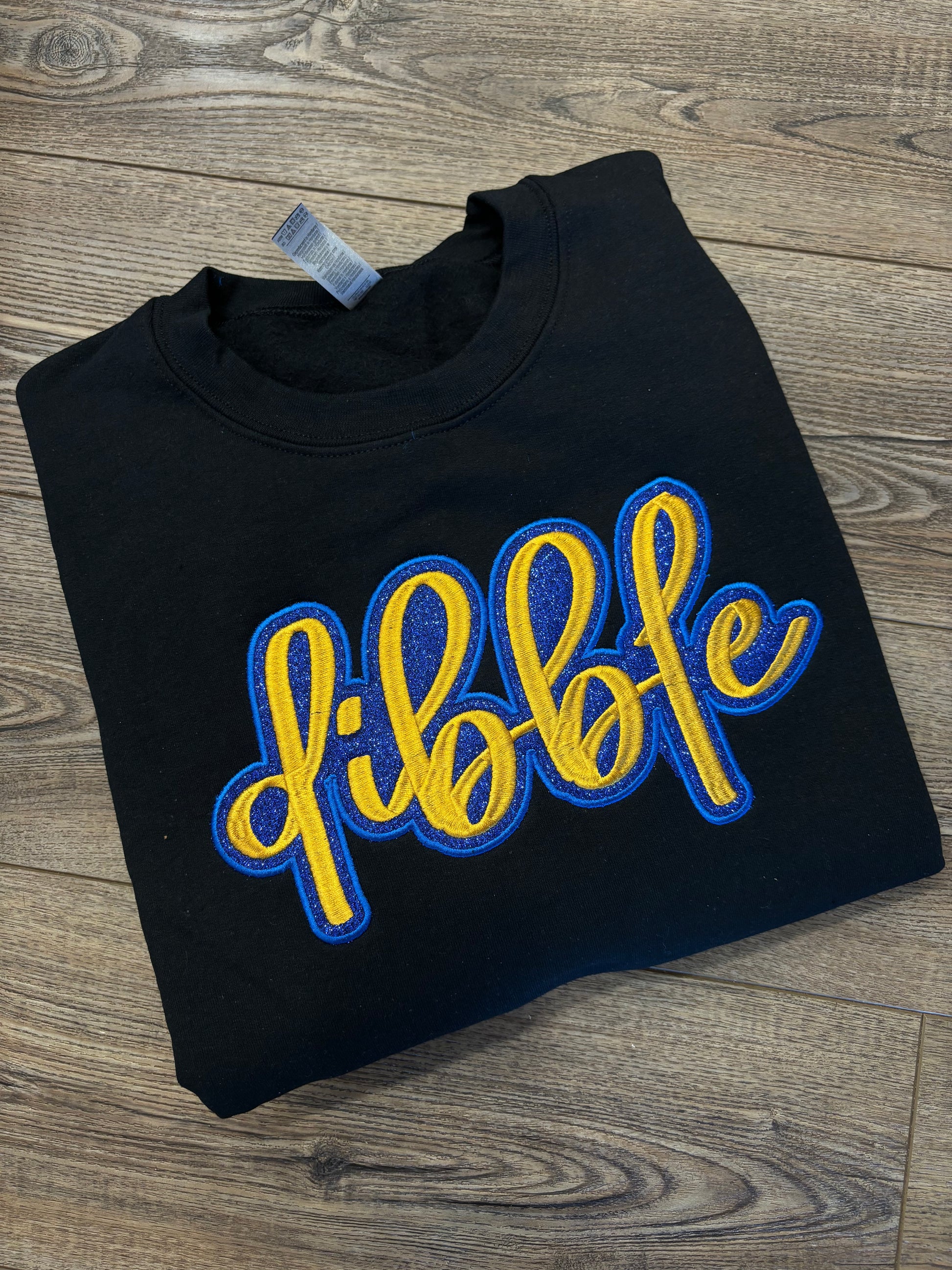 Stay warm and stylish in our Dibble Black Sweatshirt. Featuring the fierce Dibble Demons and a pop of royal blue glitter, this single layer sweatshirt is perfect for embracing your sassy side. Don't settle for basic, stand out in our Dibble Black Sweatshirt.