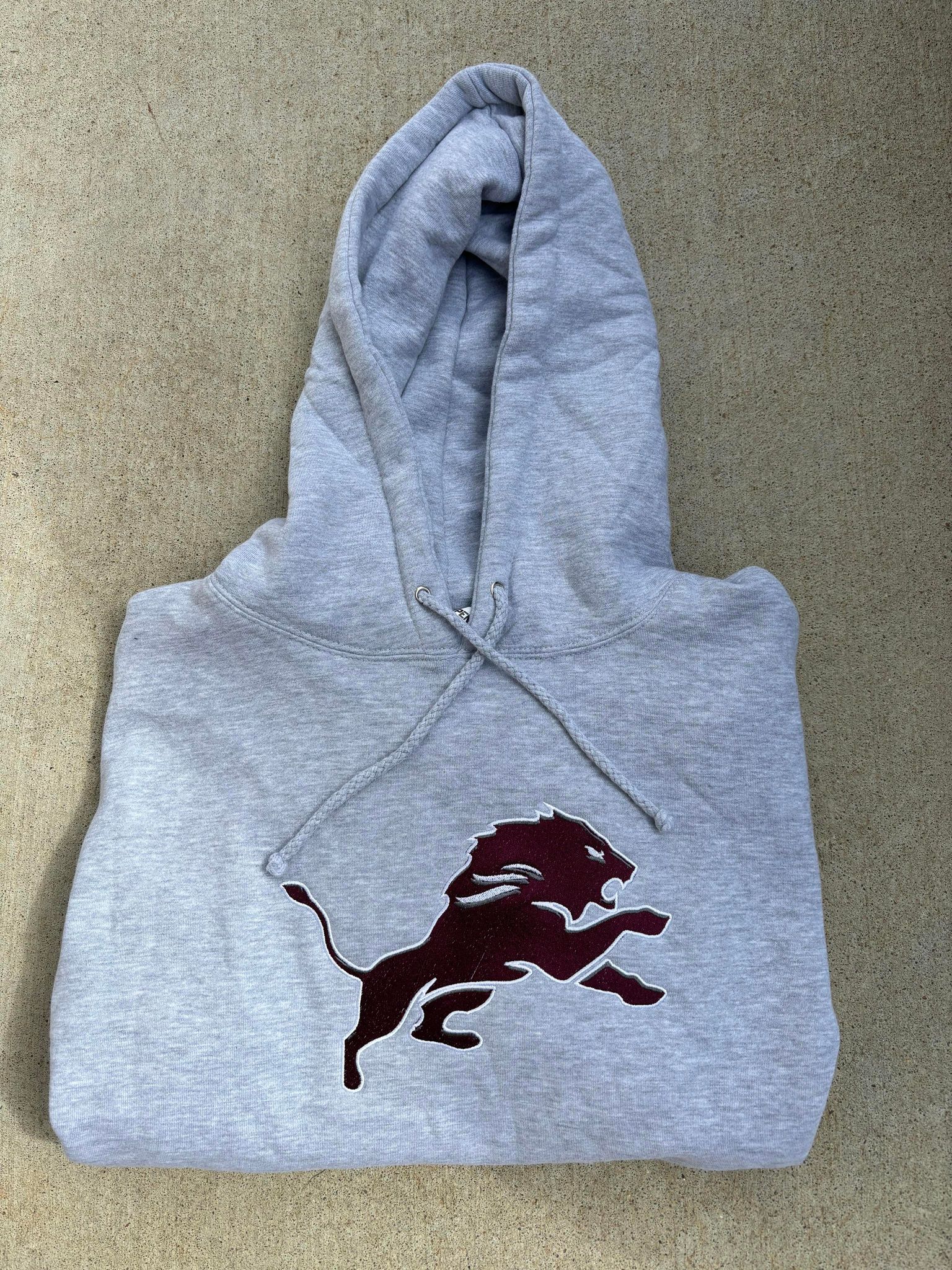 Stay warm and stylish with this grey hoodie made from soft cotton. The hoodie features an embroidered lion, adding an extra element of sophistication and distinction to your look.
