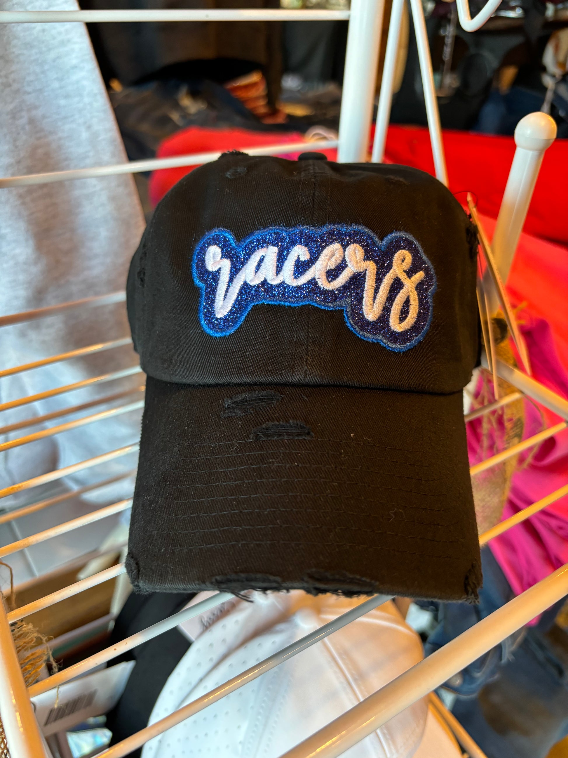 Get ready to sparkle and show off your team spirit with our Racers Glitter Hat! The relaxed black fit is perfect for all-day wear, while the glitter mascot design adds that extra touch of sass. With blue and white details, you'll definitely be the standout fan at every game. Go racers!